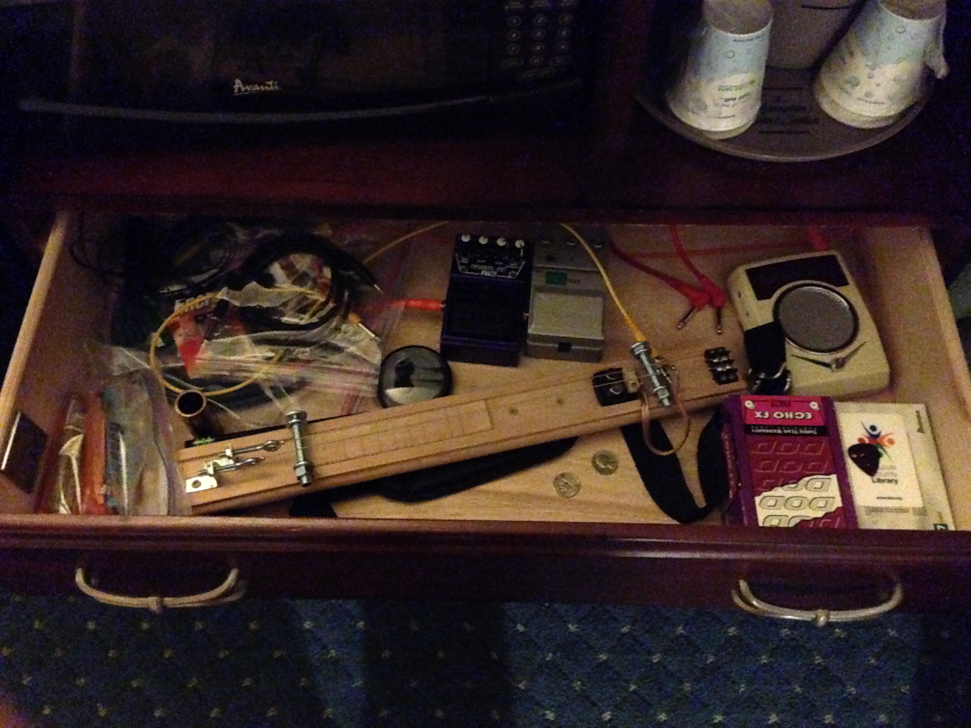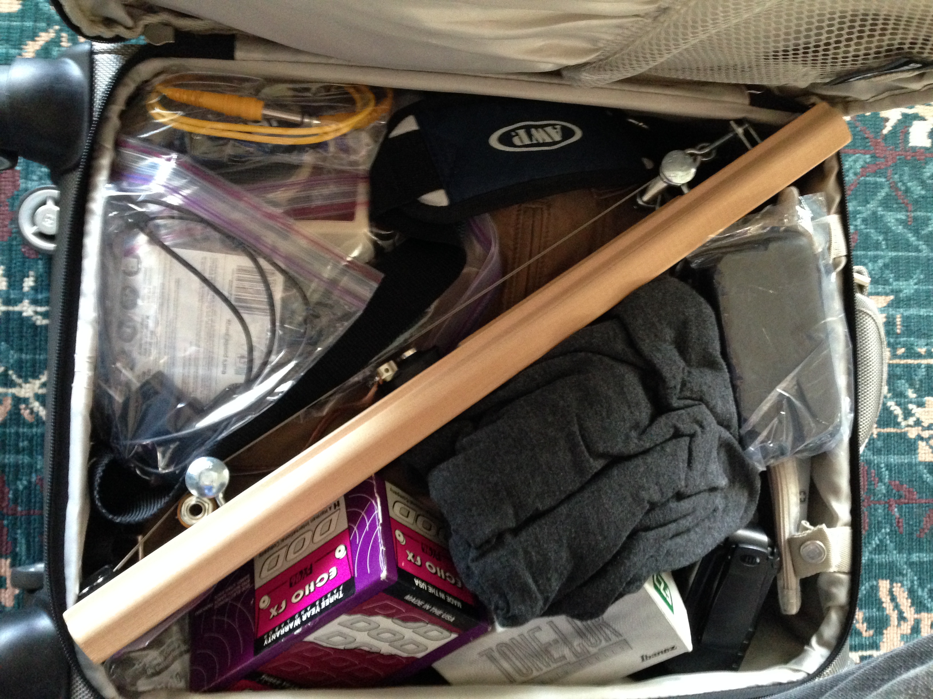 I call it a carry-on electric slide guitar because it is 20 inches in length and designed to fit diagonally across a carry-on sized suitcase. It worked well and though I brought a distortion pedal and mini amp, I really only needed my iPhone, the GarageBand app, an iRig interface, and a pair of headphones.