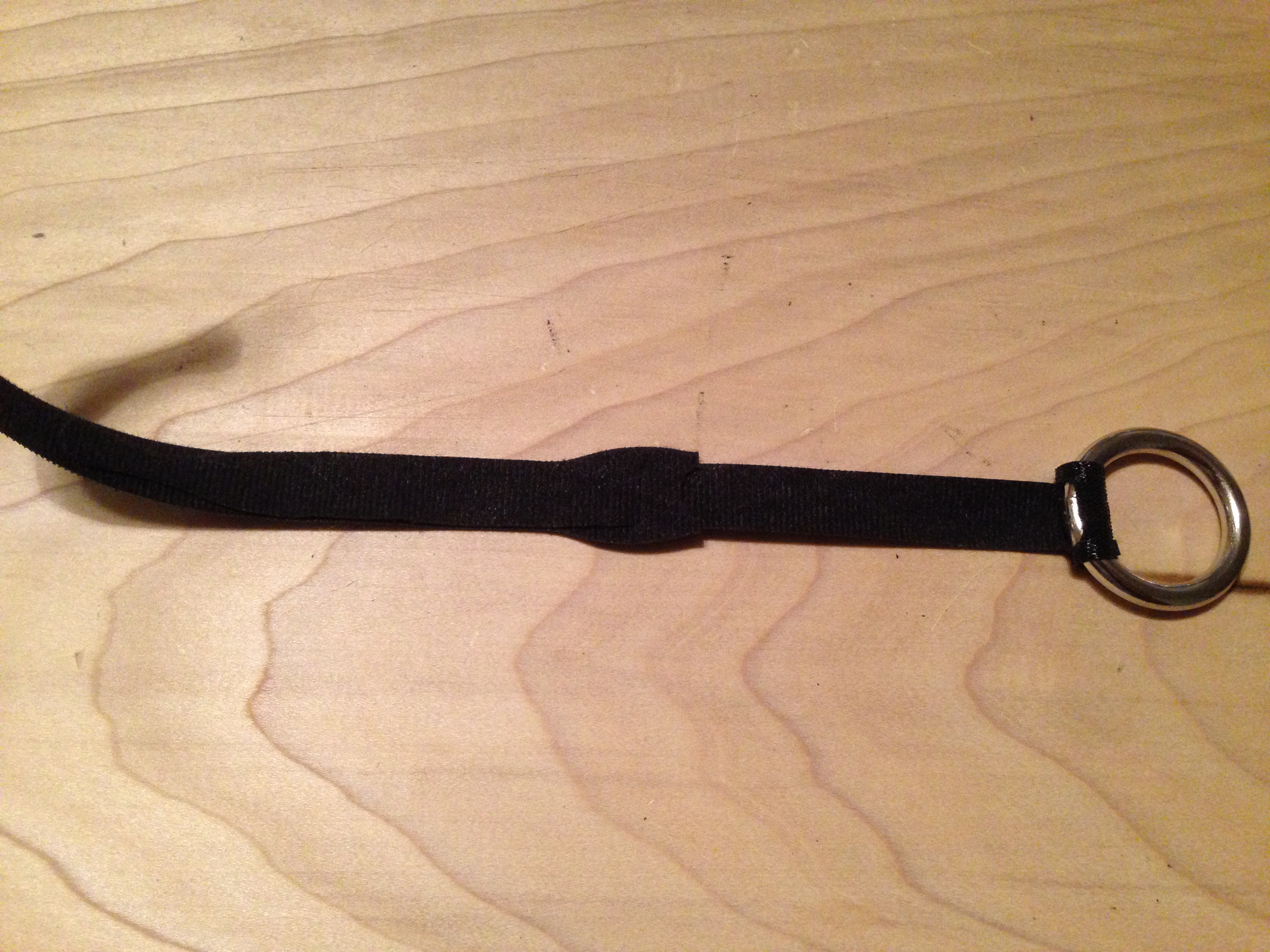 d. Thread the strap through the other end of the ring and pull the strap back tightly, centering the ring. If the ring is not centered, go back to step “b.” and try again.