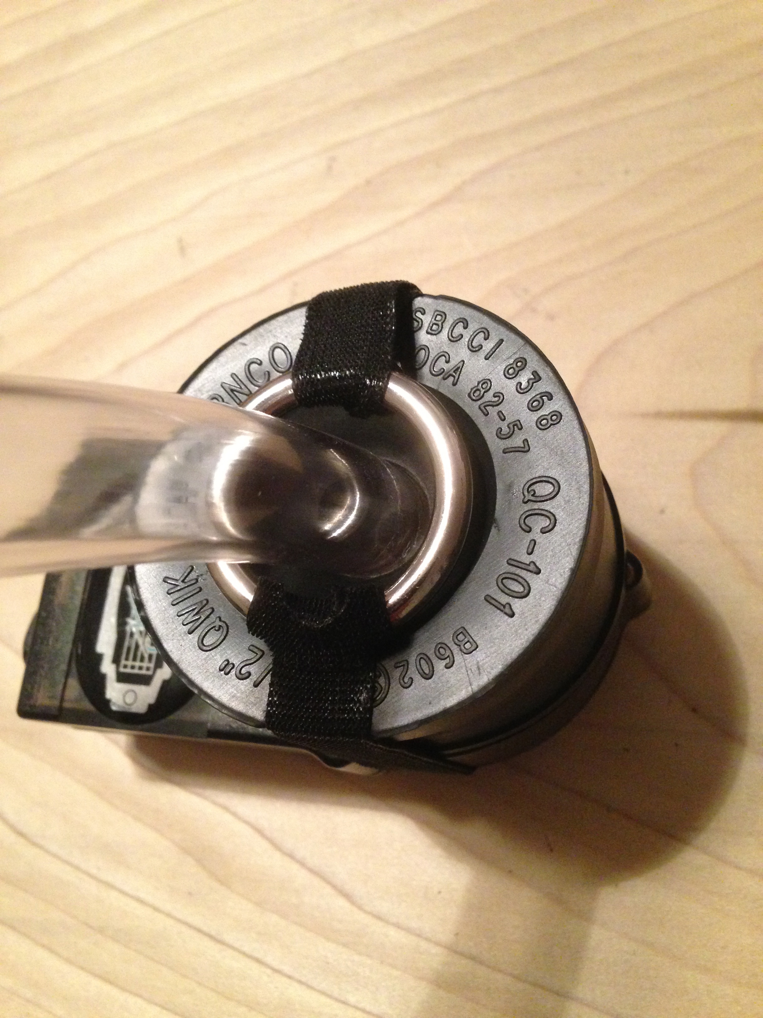 a. Grip 1/2” ID / 5/8” OD tube about 6 inches from opening.