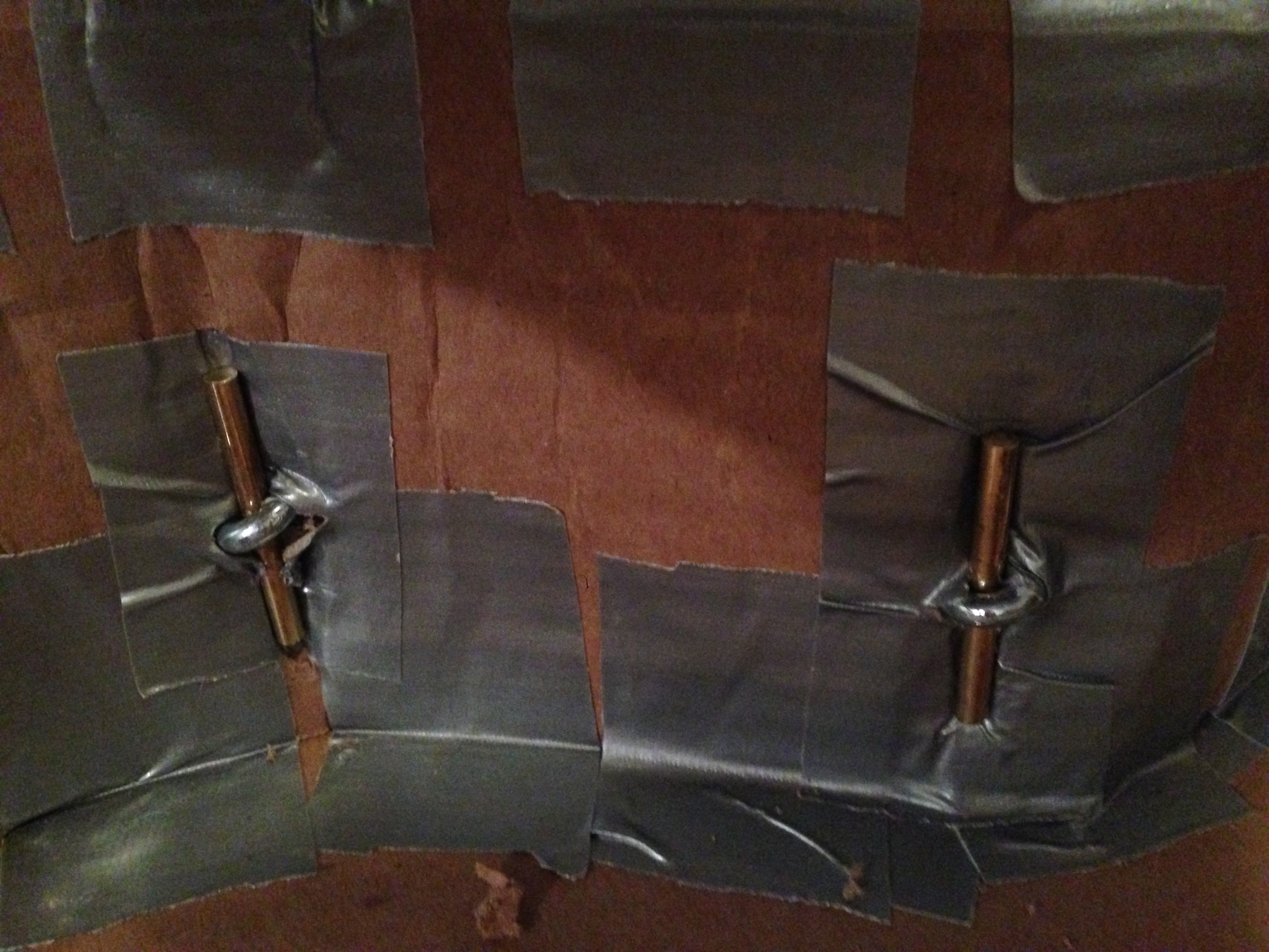I was concerned about what to use for a handle for most of the project, but I couldn’t be happier with the chain handle that I ultimately decided on. It installed easily. Two cuts in the side of the case and some scrap brass bar to hold the ends securely in place. A couple pieces of gray duct tape finished the ends nicely.