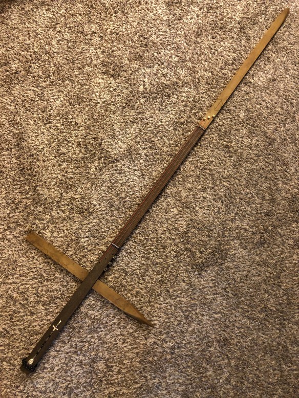 Additionally, I made a strap and two headstock strap ties from black duct tape and brass binding screws.