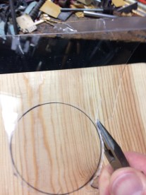 Quick research uncovered that I need only cut around the shape with a razor blade. After etching a circle about a 16th of an inch outside of the Sharpie outline, I flipped the blade backward and traced the etched circle two more times.