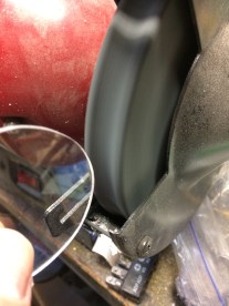 Using a small bench grinder, I removed the material in an even, circular motion up to the Sharpie outline. Then, placed the cover in the hole to check for proper fit and went back to the grinder for small adjustments. In absence of a grinder, sandpaper could be used, but it would require multiple grits and a lot of time.