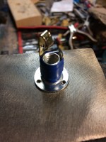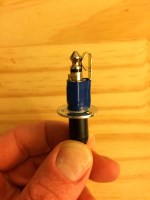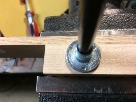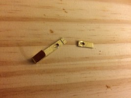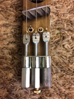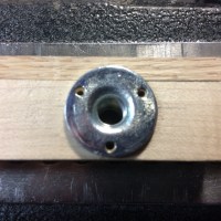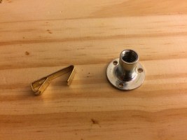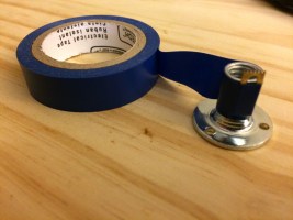 With these parameters in mind, I decided to make my own 1/4″ output jack. After making and testing a prototype made from spare parts on my bench, I found that a workable 1/4″ jack can be made from a 5/16″ tee nut, a picture hanger and some electrical tape (preferably 1/2″).