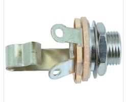 The jack is complete—now you just have to drill a hole in your instrument. When choosing the location, remember, if you are putting it in the side, the board is only an 1-1/2″ wide so you only have about an 1-1/4 of safe, useable depth space.
