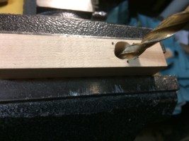 Important—practice drilling the hole on a scrap piece of wood that is the same size and species of wood, so that you can get a feel for the shape of the hole. Once you find the shape that fits your jack into your project, transfer the shape and drill.