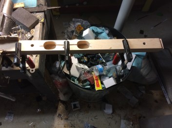 It began with a six-foot maple 1×2. Holes were drilled with a spade bit and then shaped with a file until a pair of JSA Nd144 Electromagnetic Cigar Box Guitar Pickups fit snug. A rough channel was carved for running wires.