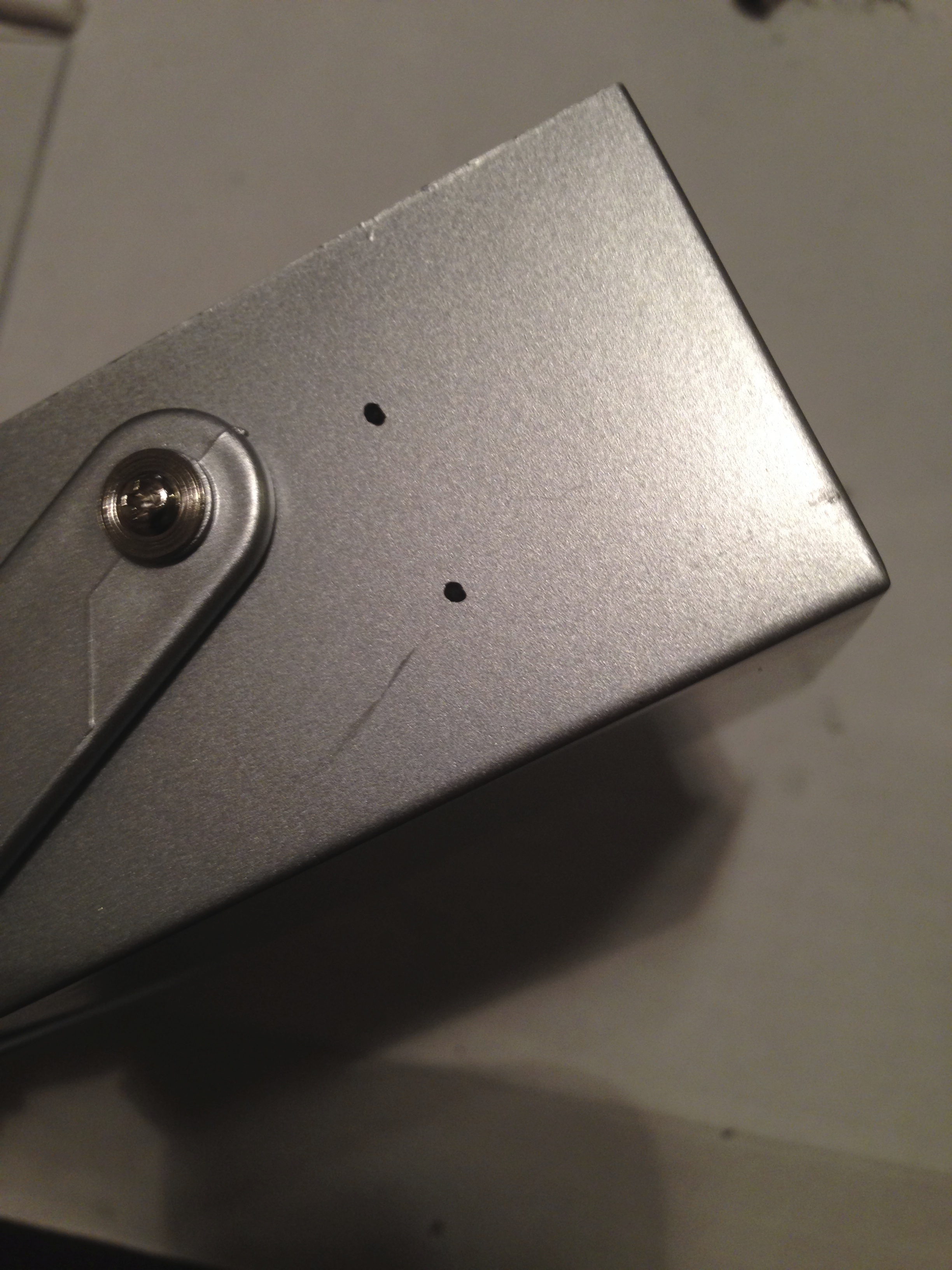 d. Place the tip of the bit on the mark on the casing. Drill the holes, taking care not to hit any of the wires or interior components, and then clean the holes by cutting away excess material with a hobby knife and dump the debris.